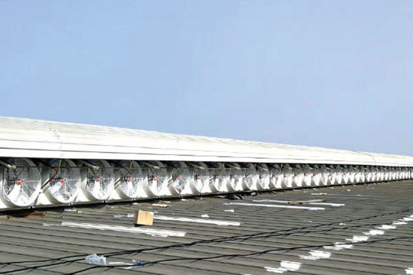 紡織廠車間機(jī)器多,工作時散發(fā)出大量的熱量,引發(fā)紡織廠車間高溫、悶熱,而且飛毛過多,空氣污濁,嚴(yán)重影響員工的身體健康。因此,紡織廠采用了本公司研發(fā)制造的紡織車間降溫設(shè)備(負(fù)壓風(fēng)機(jī)和降溫水簾)來改善車間現(xiàn)存的高溫悶熱、飛毛亂飛的情況,讓空氣迅速對流交換,使新鮮的空氣源源不斷的流入室內(nèi),從而為車間創(chuàng)造一個涼…